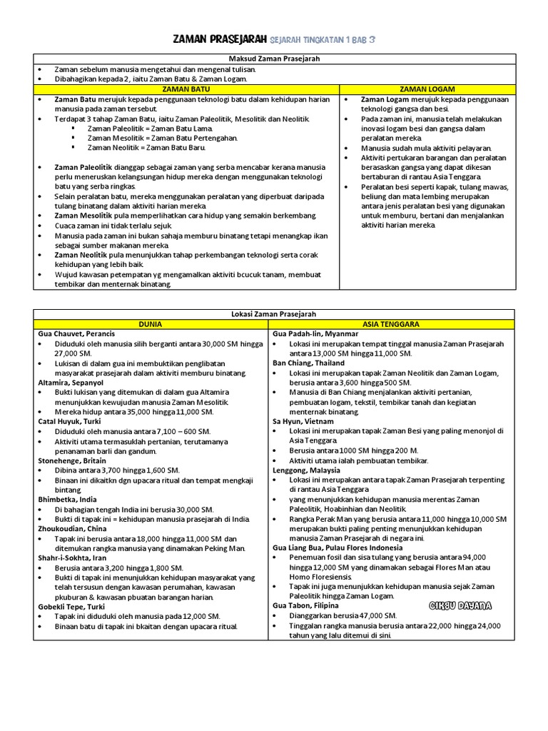 - UNESCO yang terdapat di seluruh dunia. Mari terokai lokasi Zaman Prasejarah yang wujud di dunia. Nota Sejarah Tingkatan 1 1 Nota Padat Sejarah Tingkatan 1.
